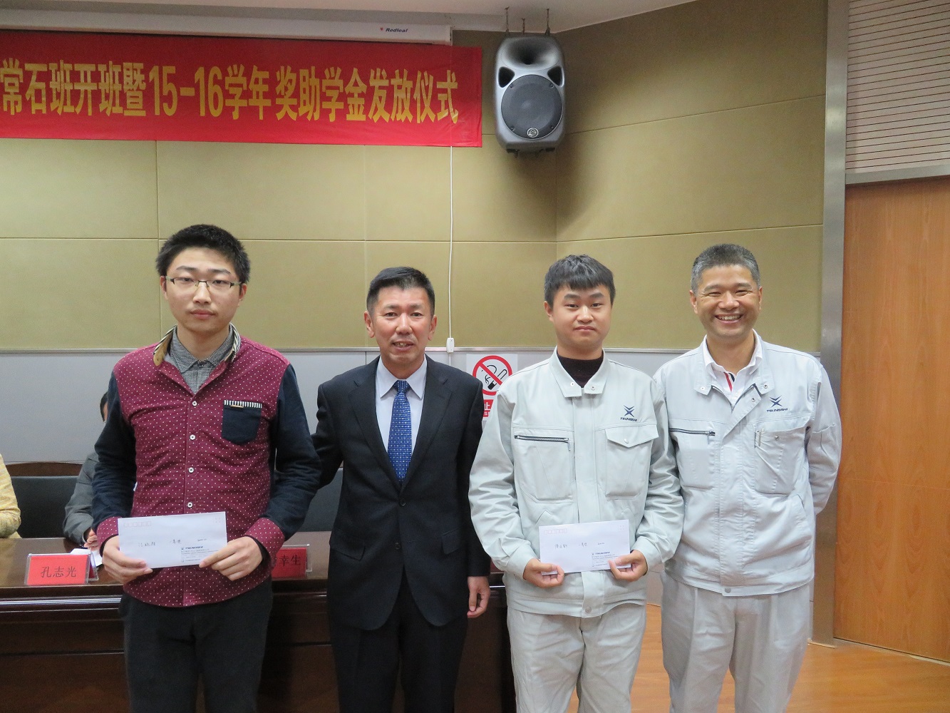 During the ceremony, President Sachio Okumura awarded scholarships to the honor students and took photographs with them. He commented, “The TSUNEISHI GROUP was founded 113 years ago, the shipbuilding business of which shall celebrate its 100th anniversary next year. The cultivation of talent is the cornerstone of a thriving business, and our 100-year corporate development as well as technical heritage cannot be achieved without the devotion of every employee. TSUNEISHI ZHOUSHAN shall continue its efforts to cultivate talent for the shipbuilding industry and to support education in the local community.”