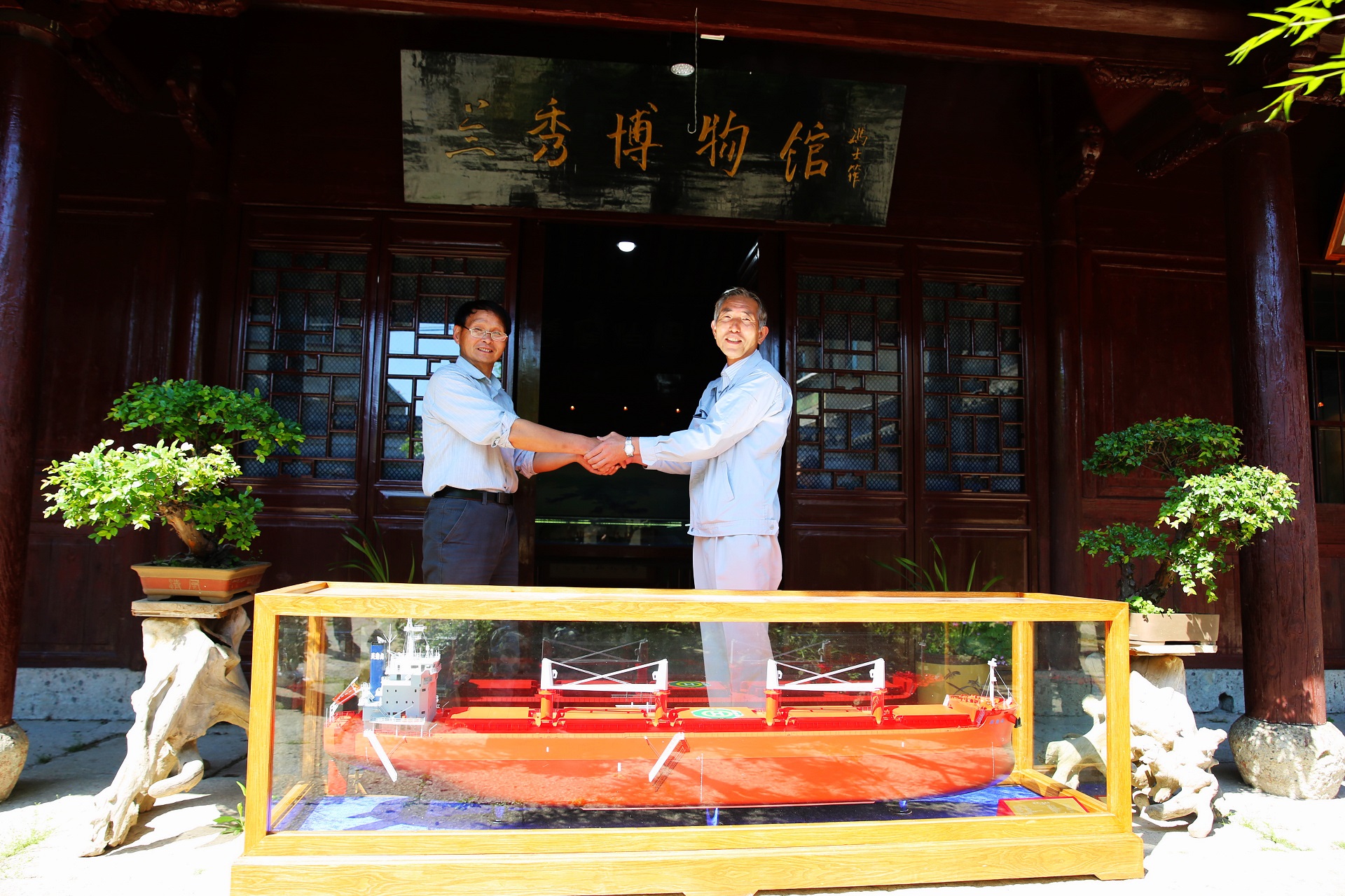 常石造船海外集團(tuán)公司的常石集團(tuán)(舟山)造船有限公司(所在地:中國浙江省舟山市岱山縣秀山島,董事長:佐藤俊夫)向秀山鄉(xiāng)蘭秀博物館捐贈(zèng)了5萬8千噸散貨船模型一臺(tái),捐贈(zèng)儀式于5月21日在蘭秀博物館正門前舉行。