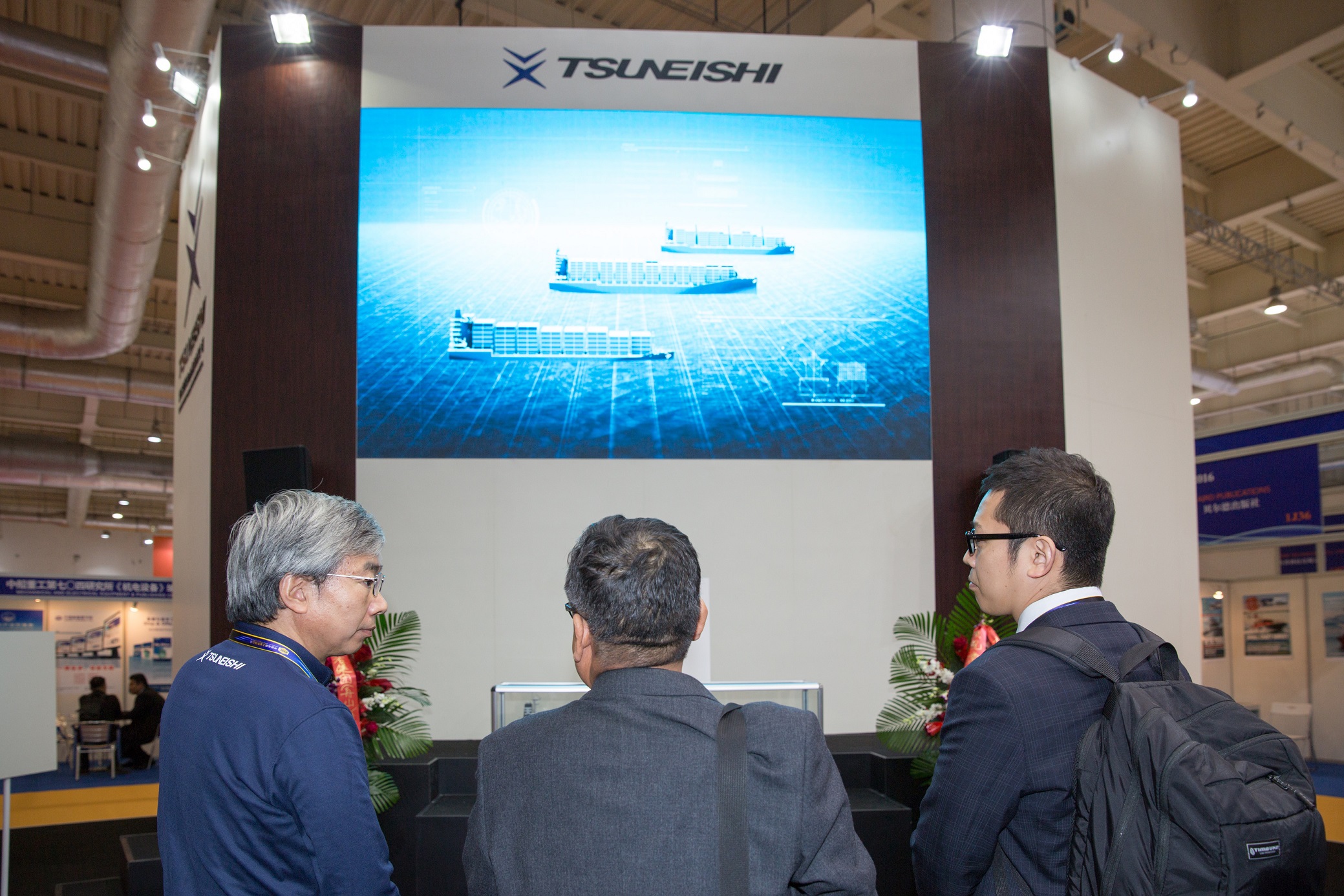 在“SHIPTEC CHINA 2016”的展廳內(nèi),常石舟山介紹了為應(yīng)對(duì)多種市場(chǎng)需求而開發(fā)的2800TEU集裝箱運(yùn)輸船、LR(Large Range I)型成品油輪、以及為擴(kuò)大造船種類正在建設(shè)中的牲畜運(yùn)輸船。