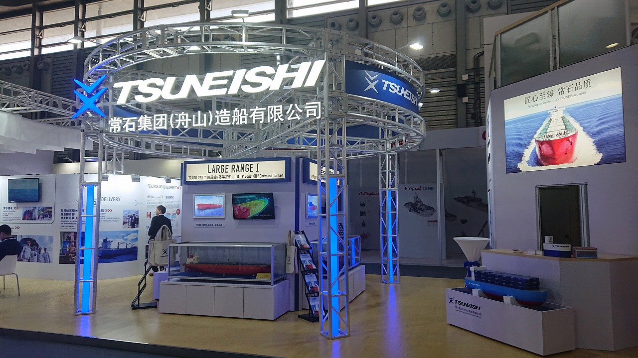 常石集團(舟山)造船有限公司(所在地:中國浙江省舟山市岱山縣秀山鄉(xiāng);總經理:佐藤二郎;以下簡稱:TZS)參加了在上海新國際博覽中心(Shanghai New International Expo Center)召開的國際海事展覽會“MARINTEC CHINA 2019”(2019年12月3日(周二)~6日(周五)為期4天)。繼2015年、2017年之后,在本次展會上也搭建了展臺,充分展示了一直以來取得穩(wěn)定成長的業(yè)績以及飛躍提升的建造能力等本公司的諸多優(yōu)勢。